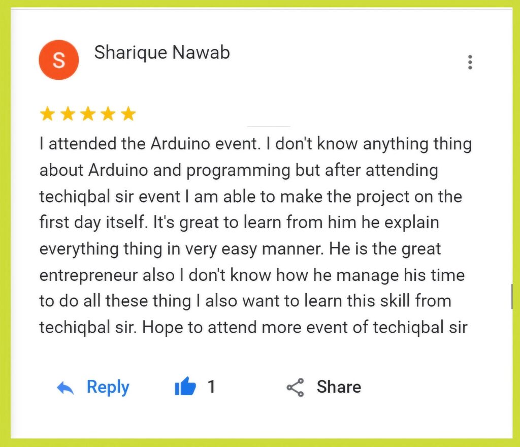 Hi, I am MD iqbal. i founded Techiqbal in 2019 Basically the idea is to make aware to people that how interesting Electronics are. so, I also have my YouTube channel where we share valuable knowledge about IoT, Embedded systems, Machine learning & Artificial Intelligence. I also worked in Robert Bosch Company. I am also the CEO of Lonex company which was founded by my father in 2012 where we manufacture Electronics Appliances.